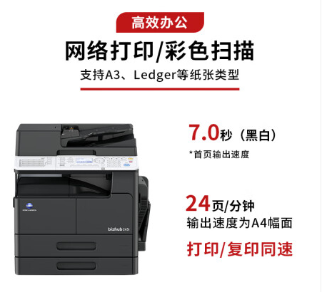 柯尼卡美能達/KONICA MINOLTA bizhub 245i 黑白激光/鼓粉分離/A3/多功能一體機